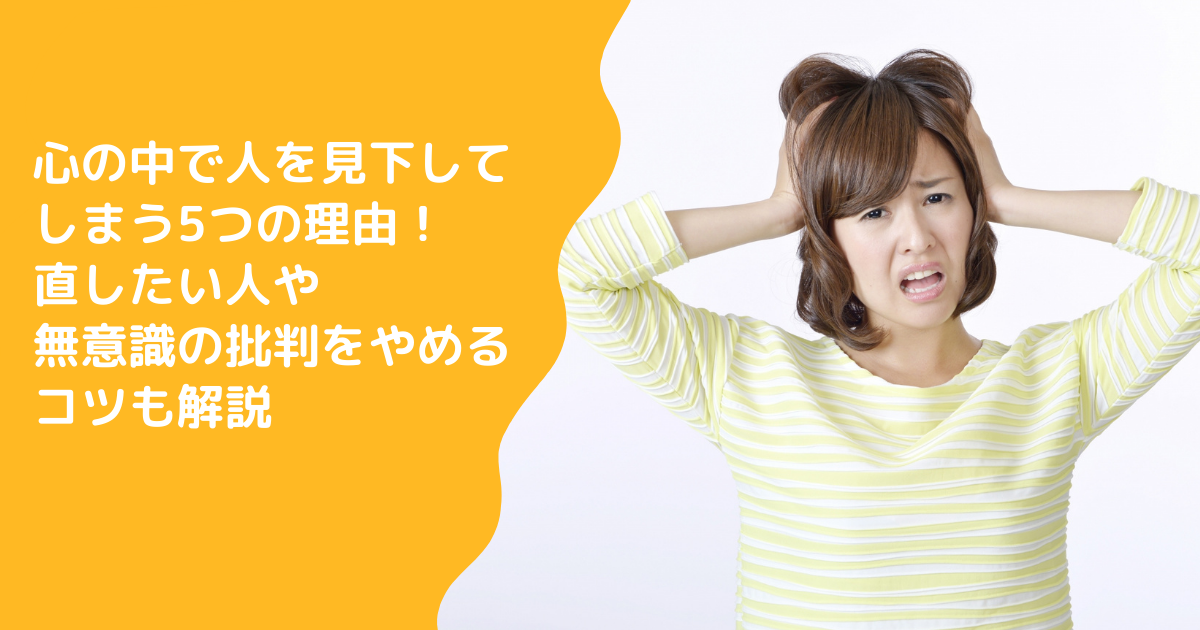 ちなみに、関連記事「心の中で人を見下してしまう5つの理由!無意識に他人を批判するのをやめるコツも解説」では、見下しを減らすコツについても紹介しています。見下しをやめたい方はあわせてお読みください。